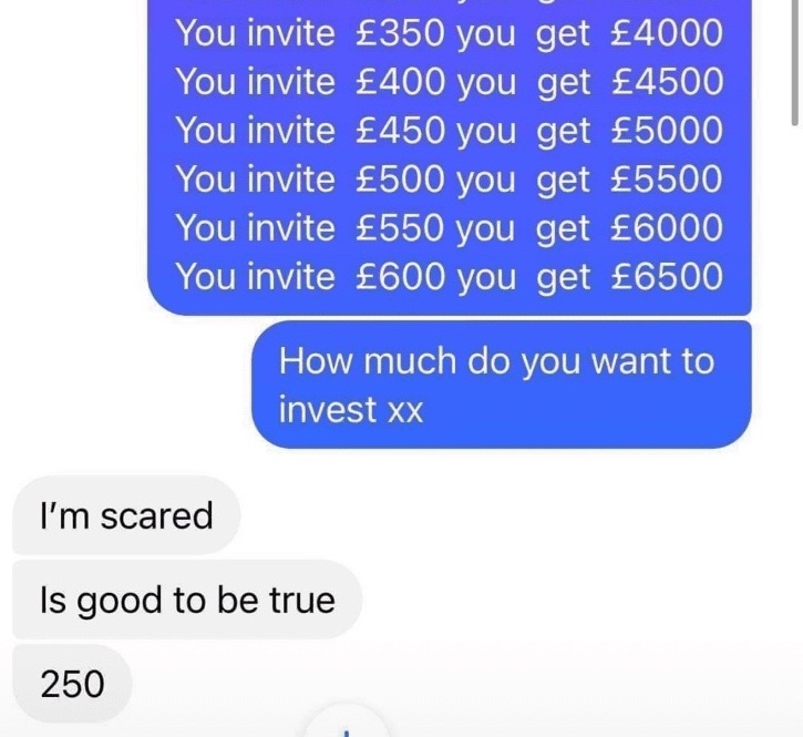 It’s easy to identify these scams if you start doing your research, if you’re experiencing financial hardship, be honest the best thing to do when wanting to make money is not to invest your last, it’s like taking your last to go gamble if you lose your losing all you have. My advice it’s best to get professional help. Social media investment scammers has took over 60m pounds from us Britons in the last 12 months.